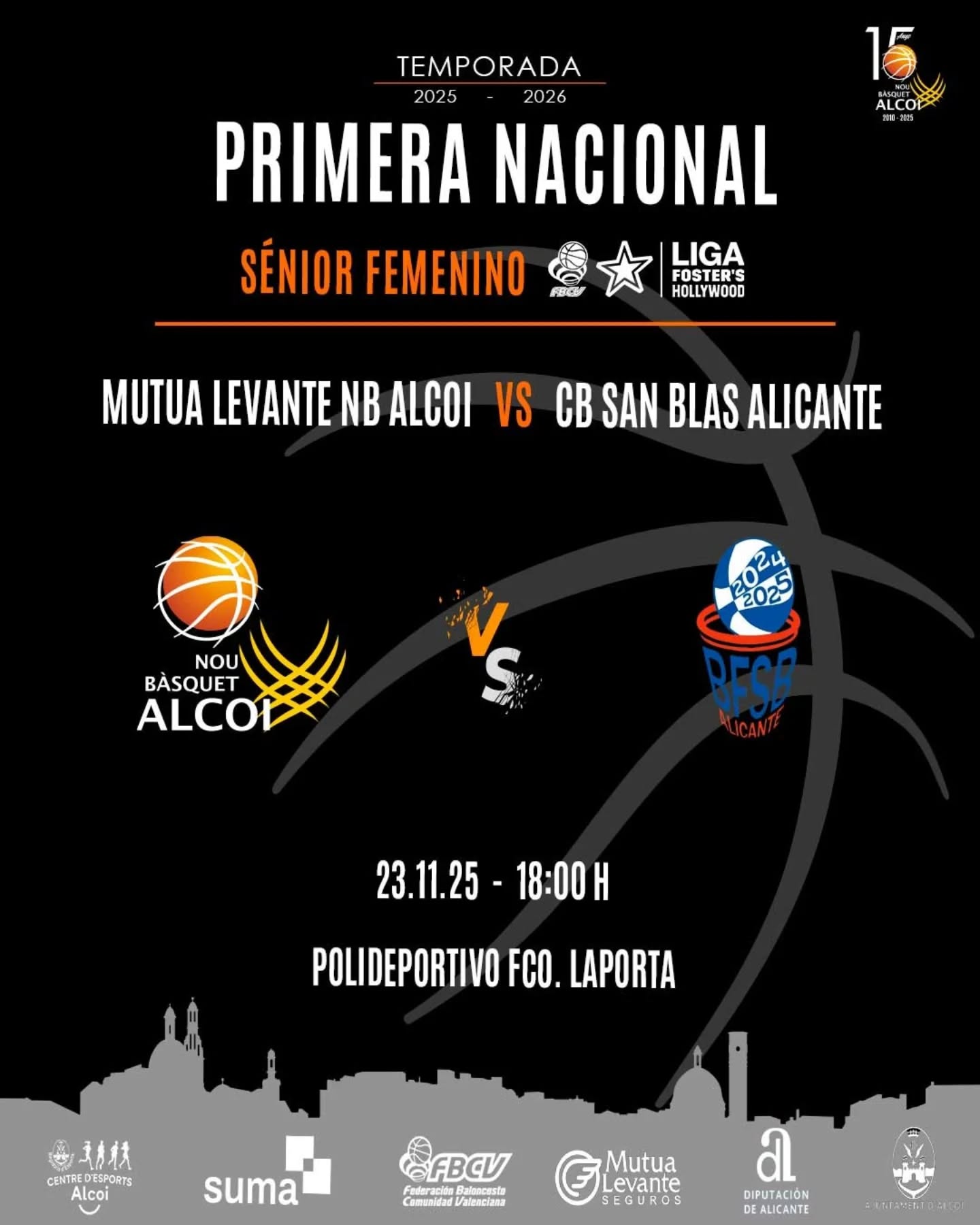 JORNADA DE LIGA I SÉNIOR FEMENINO NACIONAL por NouBasquetAlcoi | Nov 21, 2025 | Nou Bàsquet Alcoi Domingo 18:00h Francisco Laporta BF San Blas Alicante Partido importante ¡Os necesitamos en la grada!